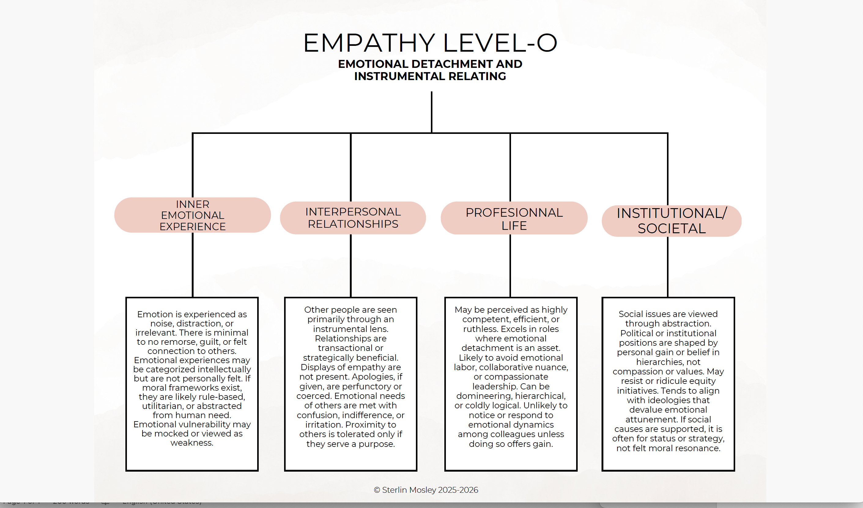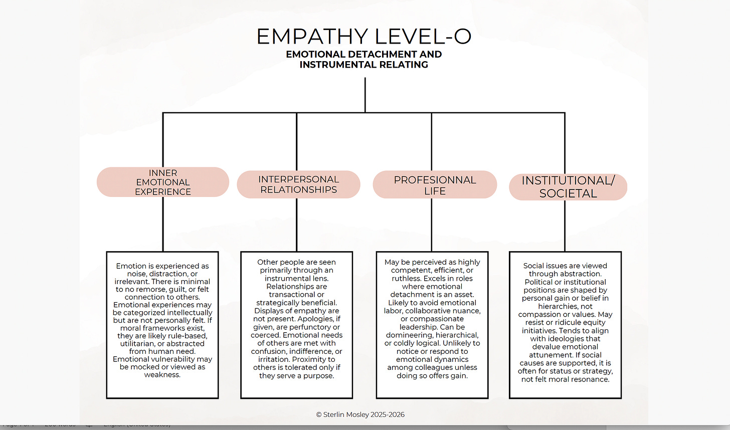 This resource is meant to help you locate your patterns with greater compassion and precision and perhaps also to better understand the people around you. It’s not diagnostic, and it’s not a moral ranking system. People move between levels situationally, and everyone deserves context. But it can provide clarity, especially in a world that tends to confuse empathy with likability, reactivity, or approval-seeking.